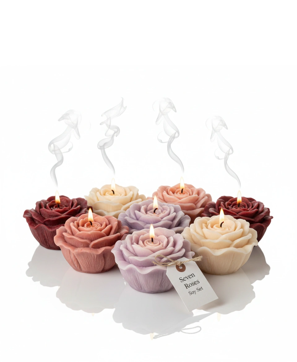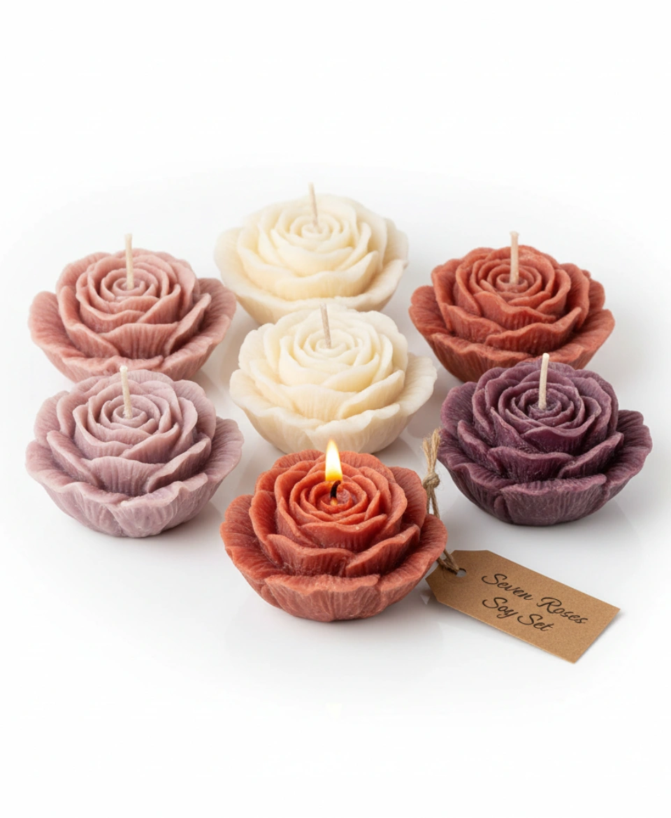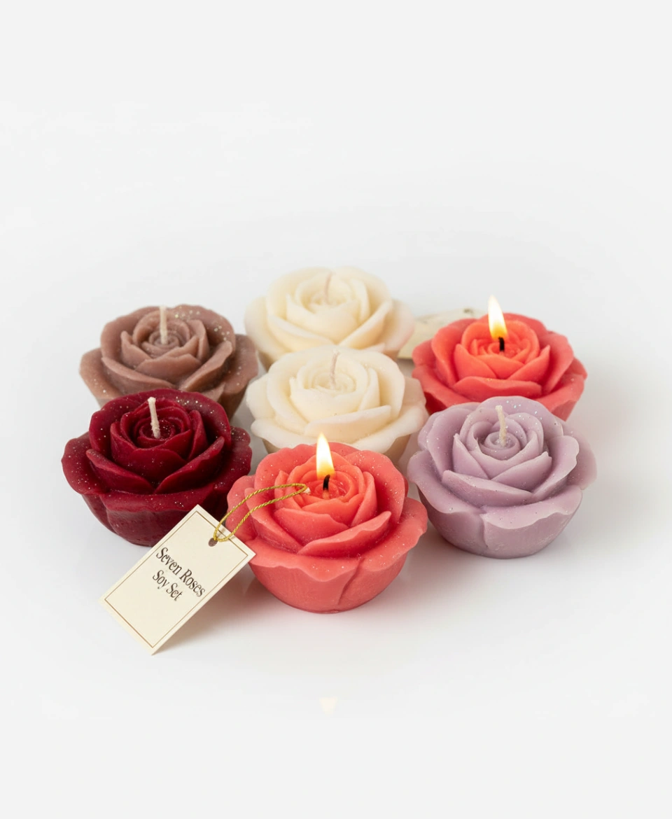 - Premium Rose Candle Set: Includes seven artisanal rose-shaped candles crafted for elegant décor styling.